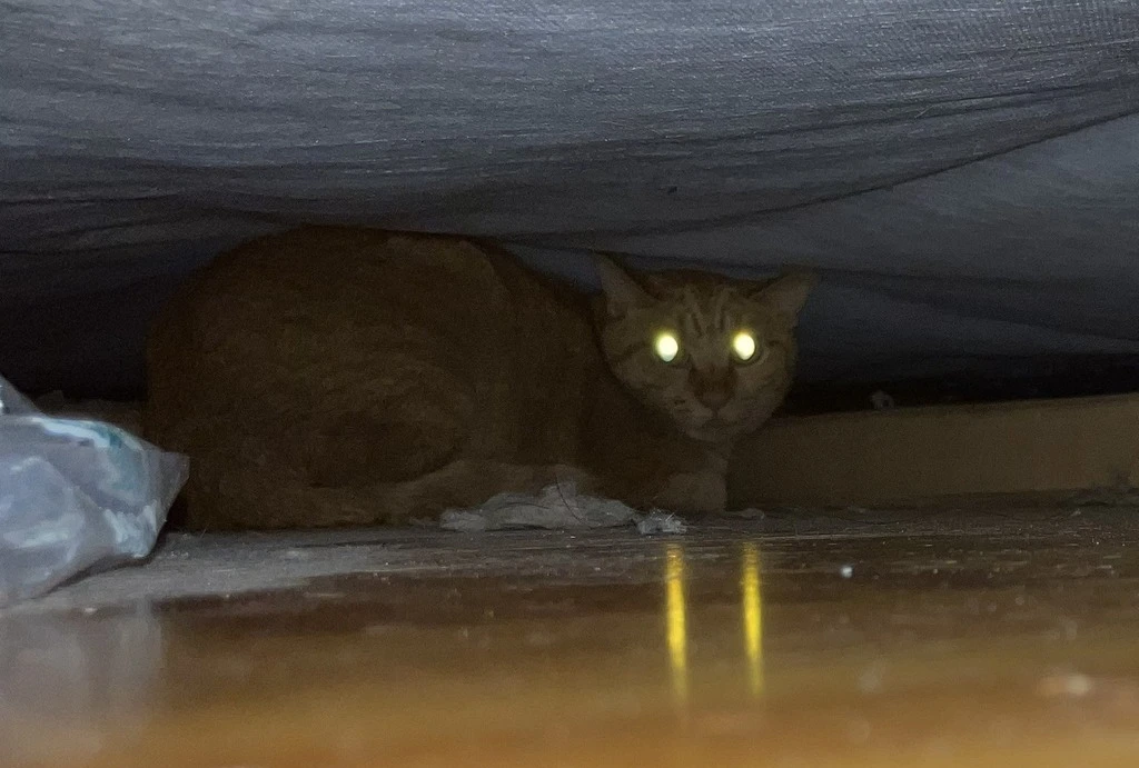また、預かり中の猫ちゃんのように人馴れしていない場合は、物音や人の気配を怖がり、静かな場所に潜むことが多く見られます。
