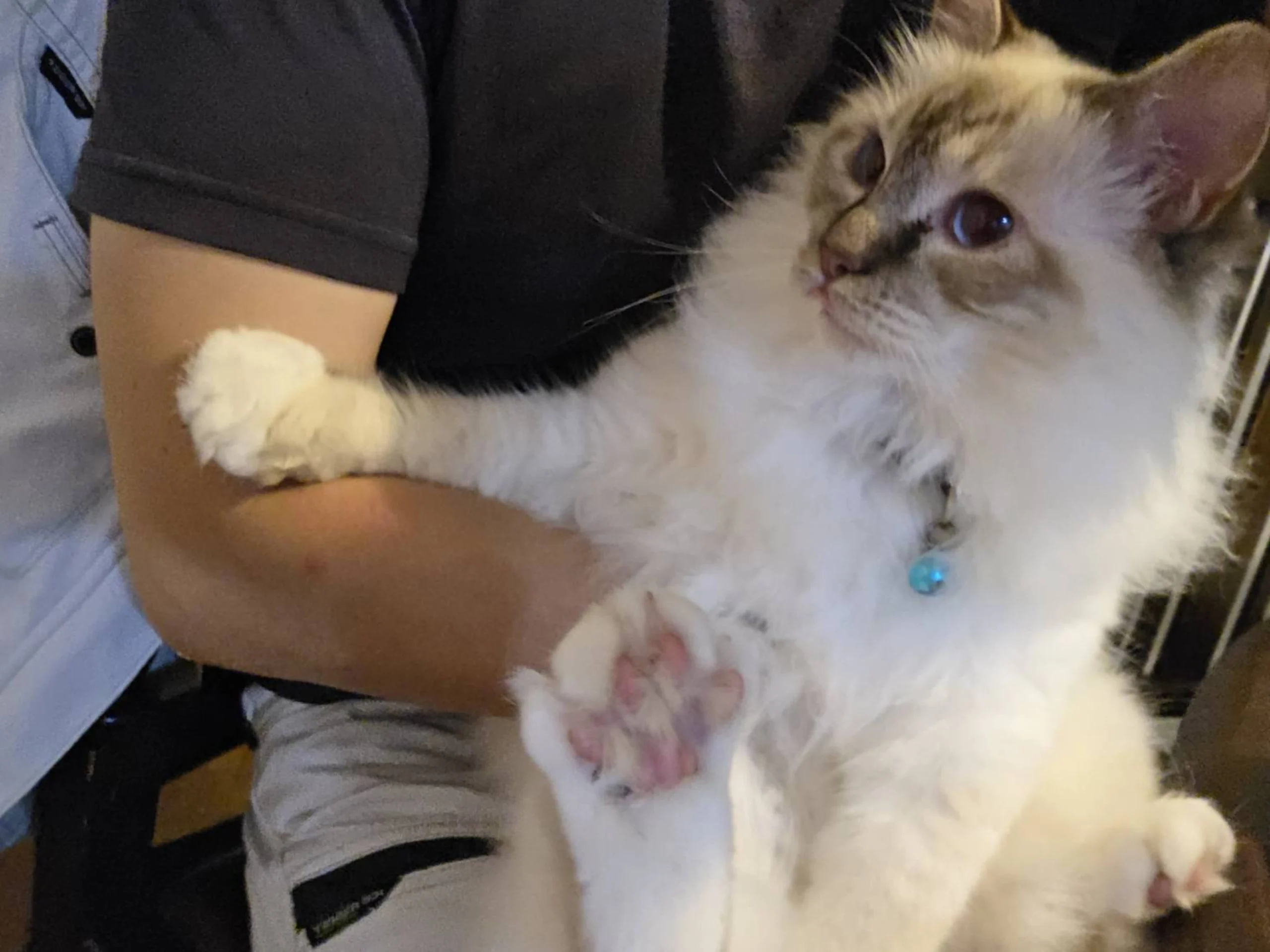 そして、自宅に戻ってきたビーナスを、チュールでおびき寄せて抱っこし、無事に保護することができました。