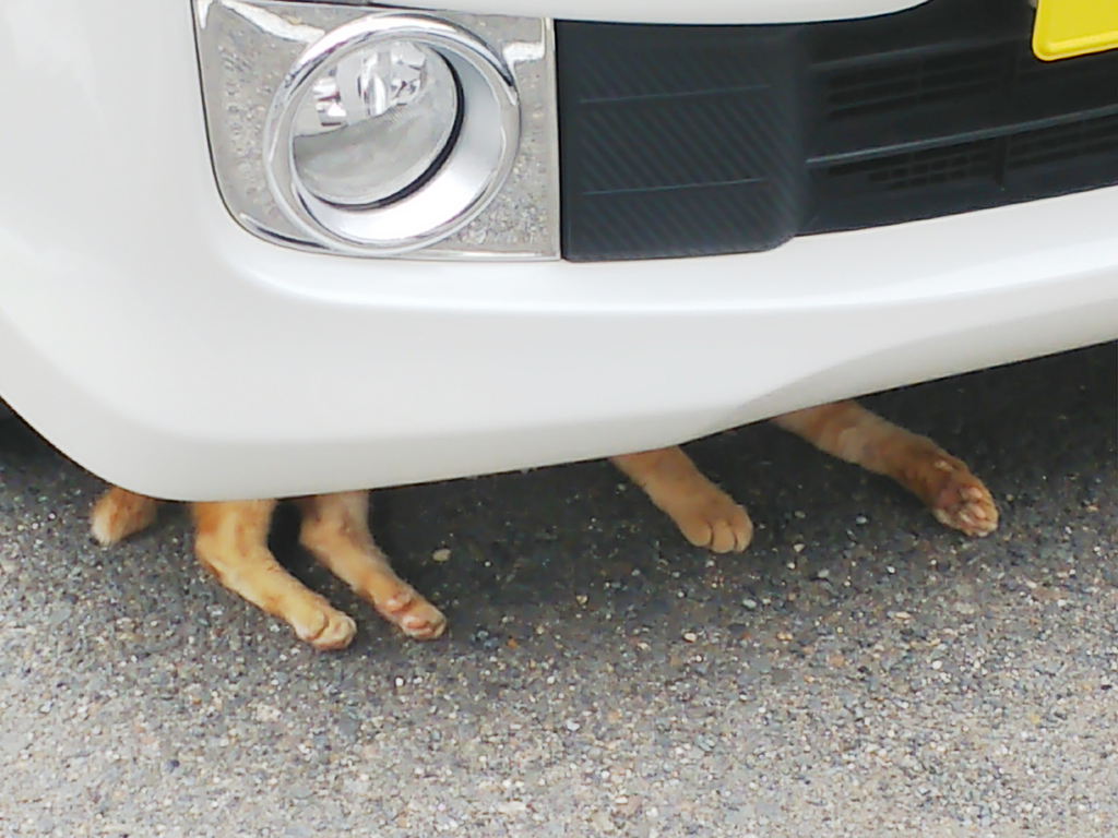 エンジンルーム付近や車体の下は、風雨を防げるため猫が好む場所です。車を動かす前には必ず確認が必要です。