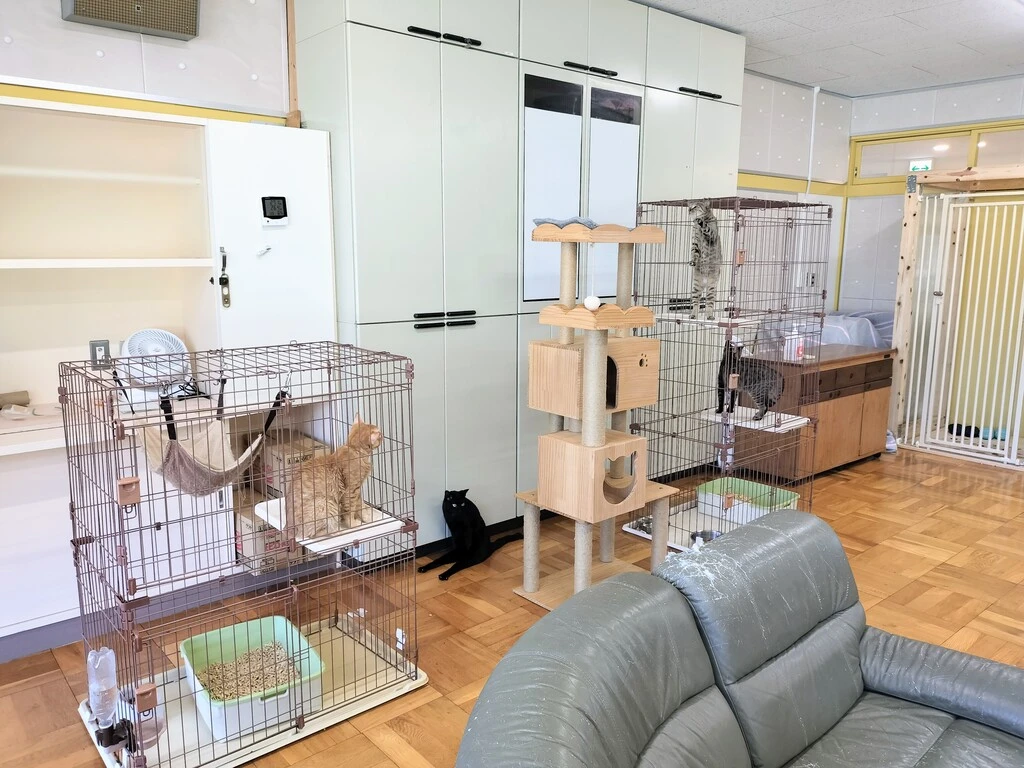 猫白血病や猫エイズなど感染症を持つ猫ちゃんは隔離され、日中は日当たりのよい、センター職員の事務室内で飼育されます。