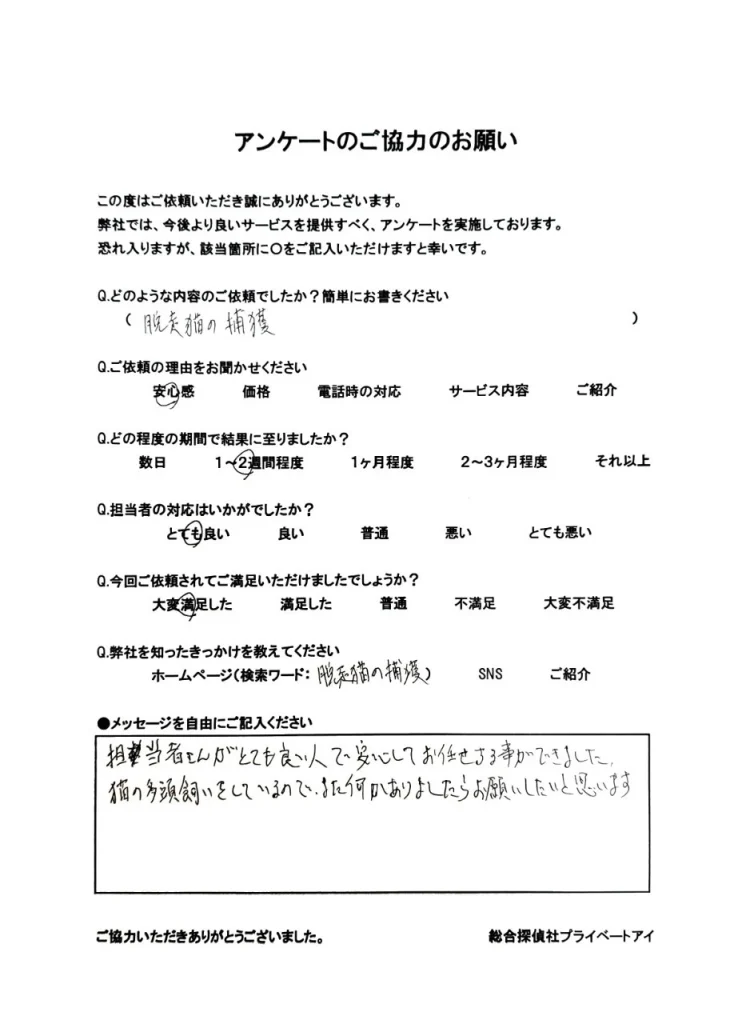 心配された飼い主さまがネットでペット探偵について検索し、結果的に弊社へ依頼されました。
